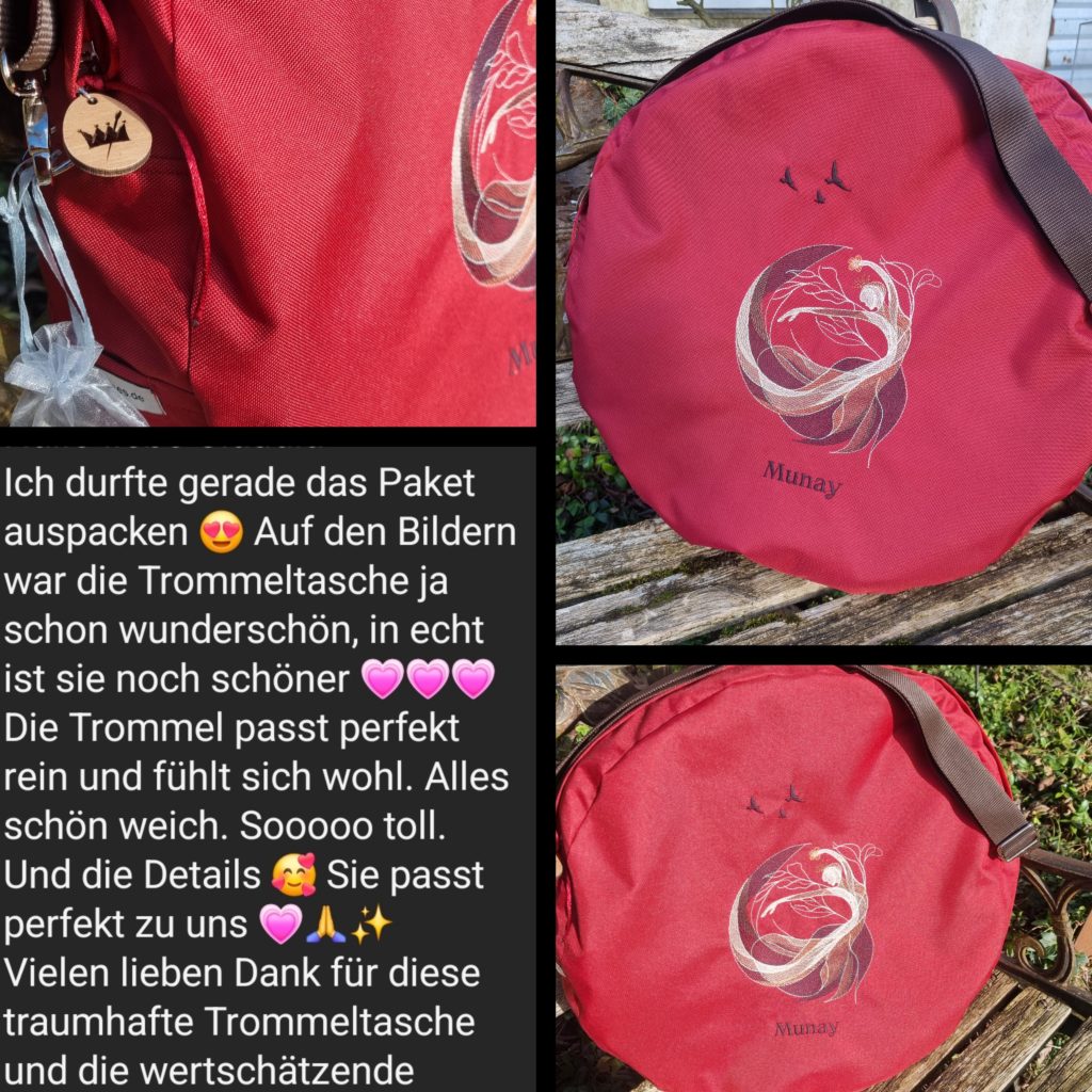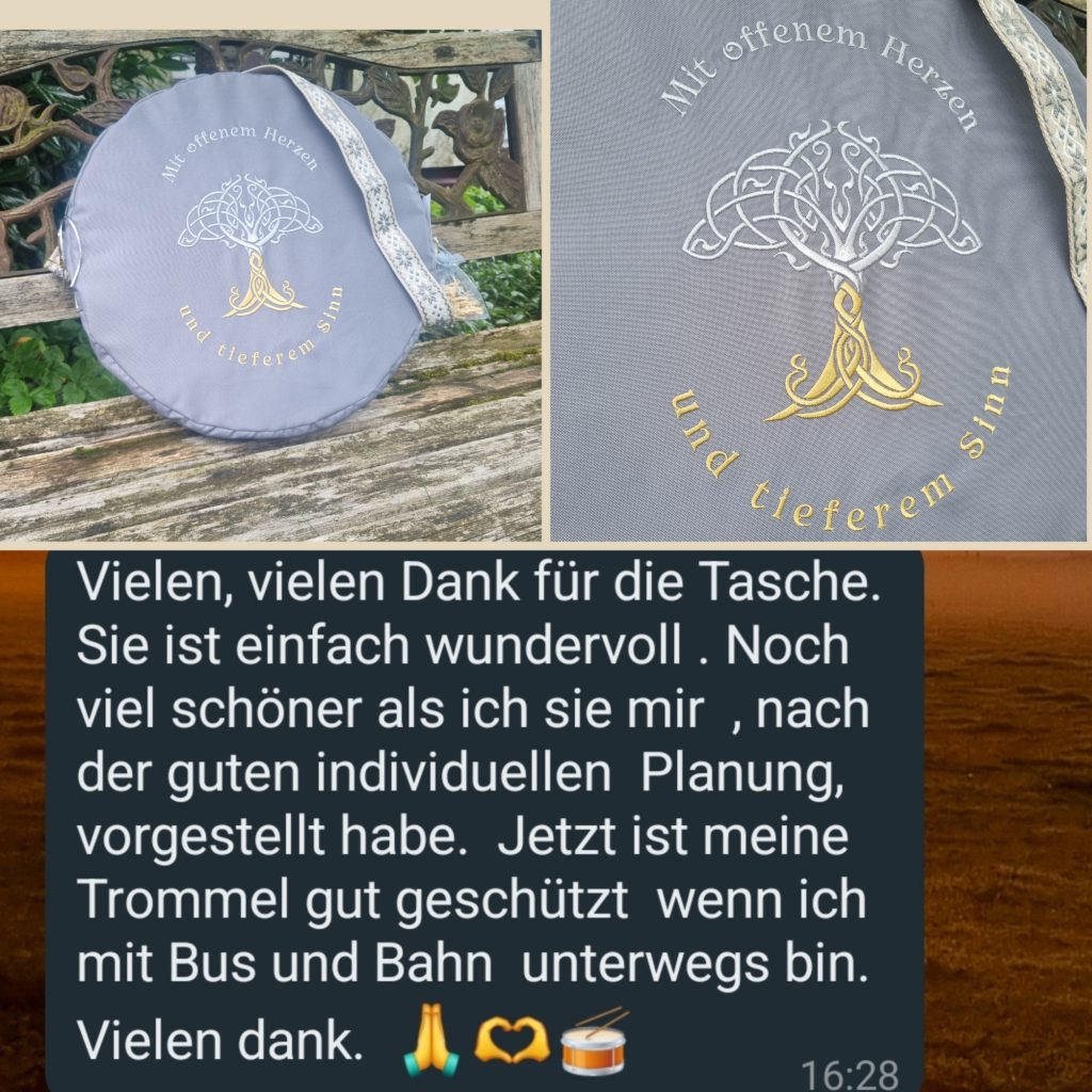 Jede Trommel ist einzigartig – genau wie ihr Klang, ihre Geschichte und ihr Mensch. Deshalb fertige ich individuelle Trommeltaschen für Rahmentrommeln und Schamanentrommeln, die exakt auf dich und deine Trommel abgestimmt sind.