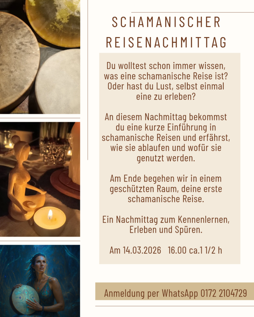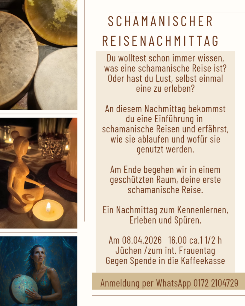 Tauche ein in einen inspirierenden Nachmittag voller Bewusstsein, Heilung und innerer Führung – und entdecke die Kraft der schamanischen Reise. Gegen Spende